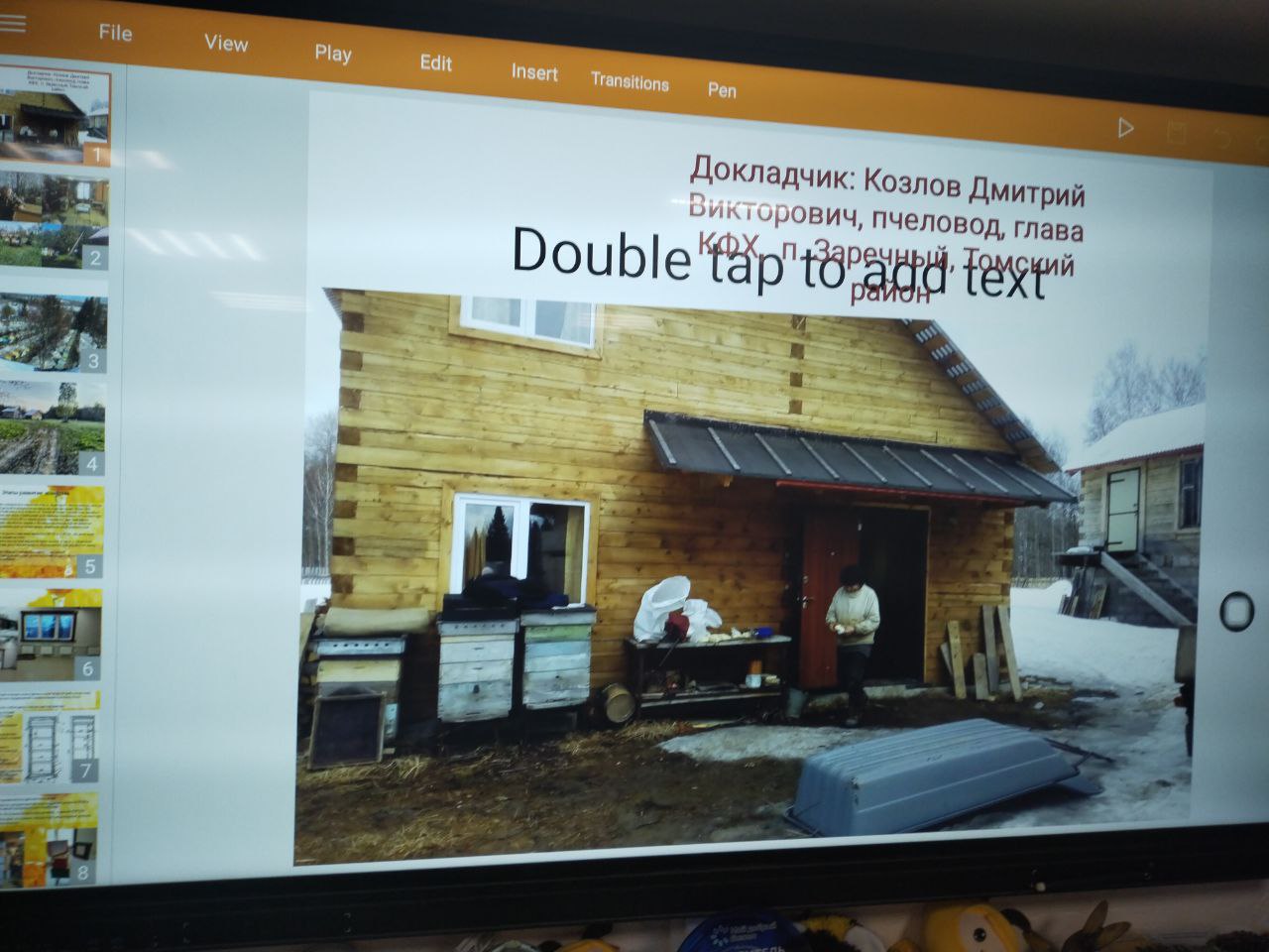 Главным спикером вечера стал Дмитрий Козлов — опытный пчеловод, глава крестьянско-фермерского хозяйства из поселка Заречный Томского района. Дмитрий подробно рассказал коллегам о ведении пчеловодства в своем хозяйстве. Он поделился уникальными практическими наработками: от методов вывода пчелиных маток и их подсадки до тонкостей получения меда и организации выездов на опыление. Отдельное внимание было уделено вопросам переработки и реализации готовой продукции.