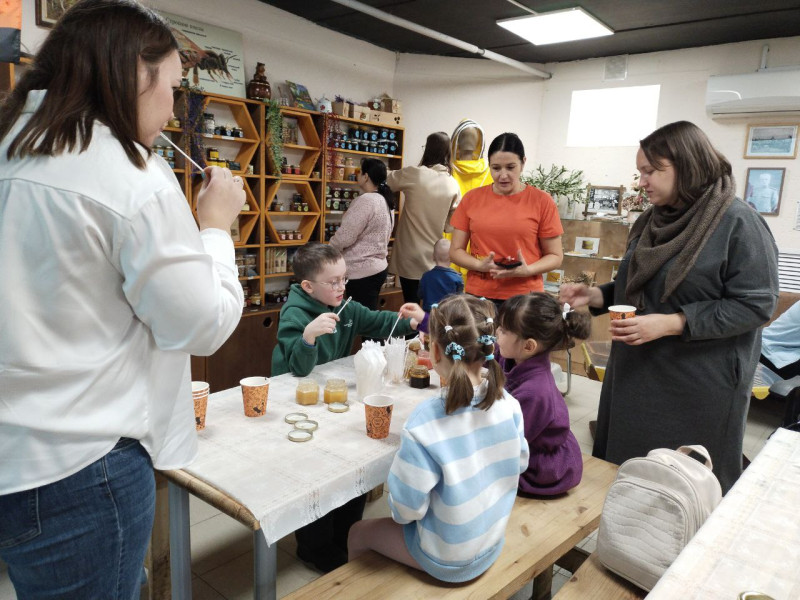 Венцом же всего действа, как и полагается в любой хорошей истории, стала дегустация мёда. Тут уж оживление достигло своего апогея. «А мне этот понравился!», — слышалось то тут, то там. И видно было, как они, увлеченные, уже строят планы с мамами, какой же баночке с душистым золотом отдать предпочтение на выходе.